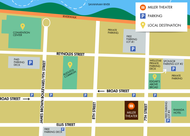 Lot 2: This lot is reserved for Augusta Symphony sponsors on Symphony concert nights and credentials are required to park.